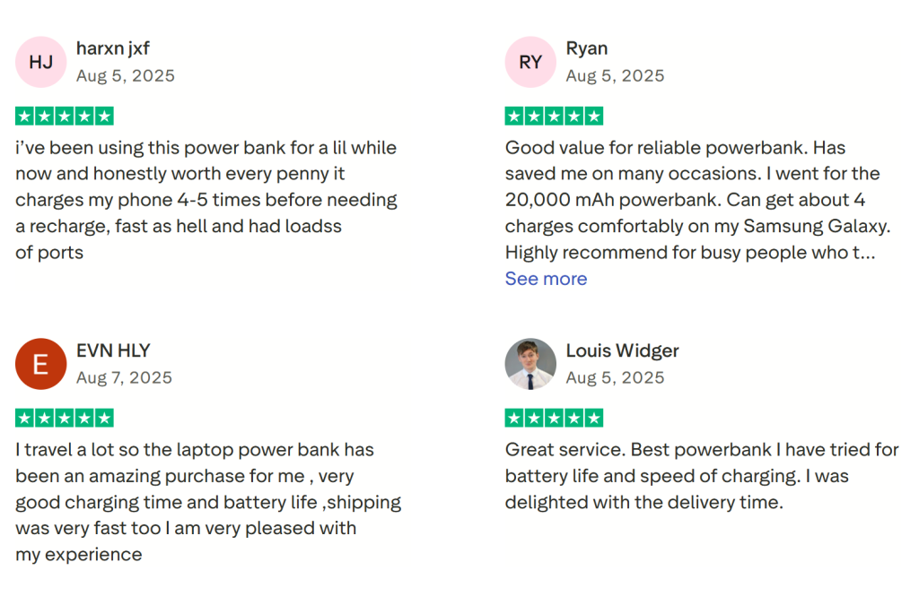 - Different power bank capacities (10,000mAh to 50,000mAh)